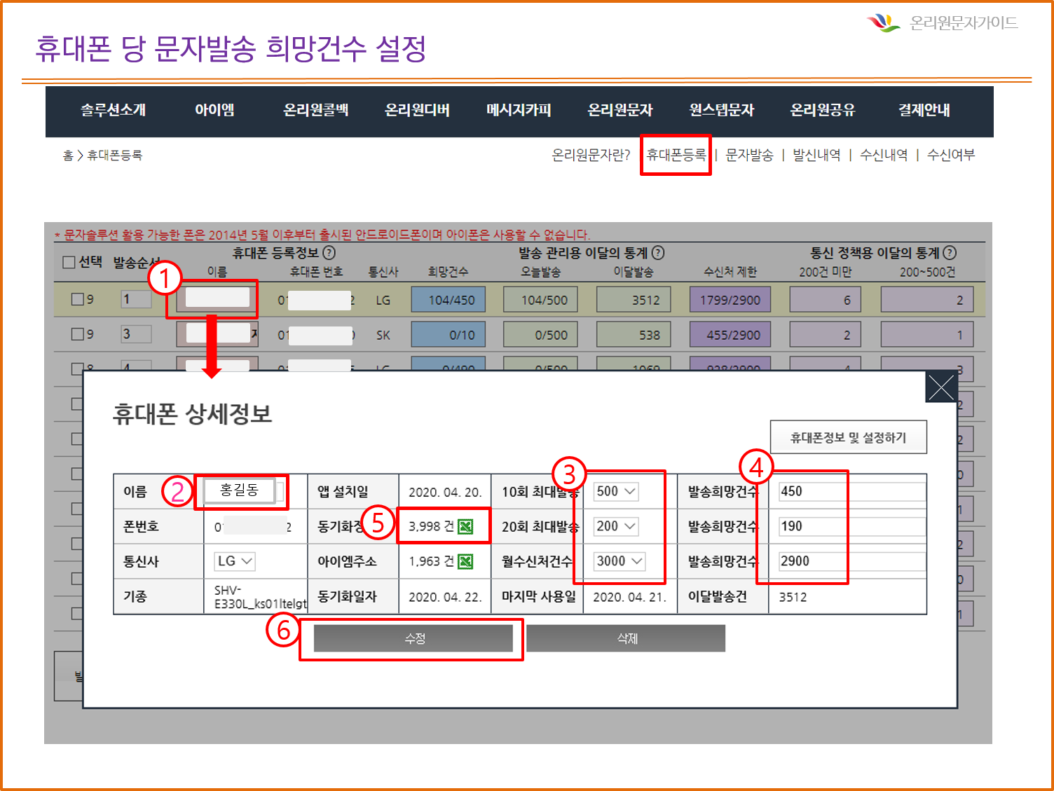 문자 [온리원문자] 발송건수 및 수신처수 직접 설정 2020-04-22 46079